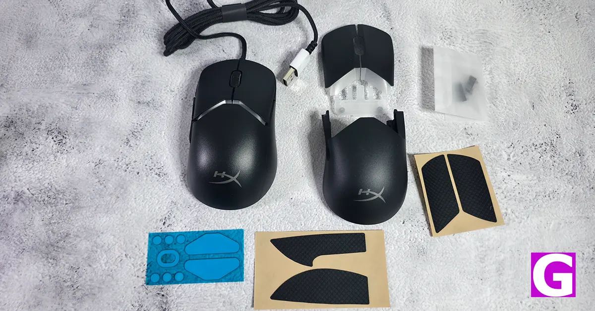 Unboxing the Pulsefire Saga feels less like opening a mouse and more like receiving a modular toolkit. HyperX bundles an alternate button cover set, swappable side buttons, an extra top shell, replacement PTFE skates, and four pieces of grip tape. That is genuinely impressive packaging for a sub-Rs 4,000 peripheral.