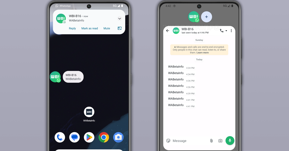 WhatsApp Notification Bubbles Availability